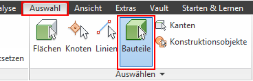 1. Klicken Sie auf der Multifunktionsleiste auf Auswahl (Registerkarte) > Auswählen (Gruppe) > Bauteile.
