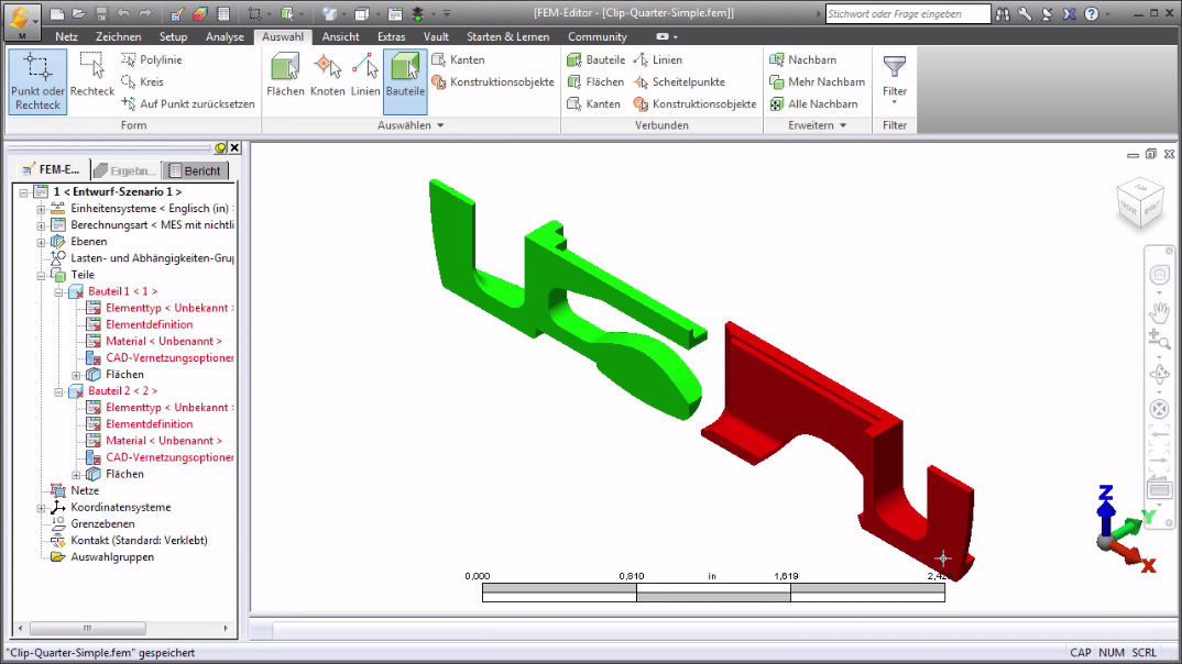 Das Federbügelmodell wird als STEP-Datei (Universelle CAD-Format) bereitgestellt. In diesem Teil des Lernprogramms öffnen wir die STEP-Datei in Autodesk® Simulation Mechanical und wählen den Analysetyp.
