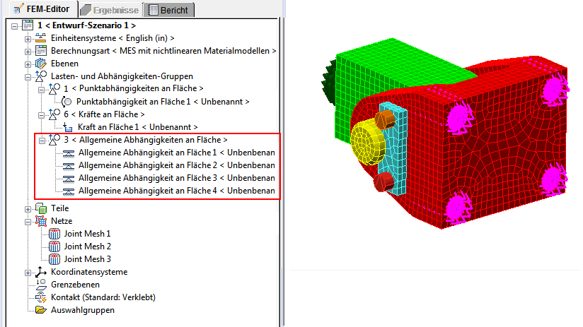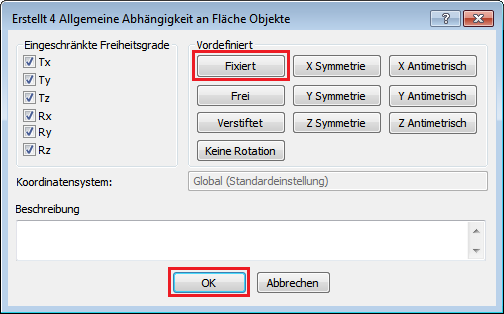Anmerkung: Wenn Sie auf Fixiert klicken, werden automatisch Abhängigkeiten aller Translations- und Rotationsfreiheitsgraden eingerichtet.