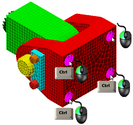 Wählen Sie eine Innenfläche einer der Bolzenbohrungen. Halten Sie die STRG-Taste gedrückt, und wählen Sie die innere Oberfläche der anderen drei Bolzenlöcher.