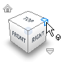 Klicken Sie mithilfe des ViewCube auf die Ecke, an der sich die obere, rechte und hintere Seite treffen. Eine hellblaue Markierung wird in der Ecke angezeigt, wenn der Cursor darauf zeigt.