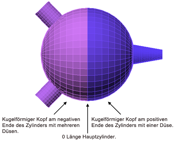 - Wenn die Option Kugelförmig ausgewählt ist, müssen Sie einen Wert im Feld Durchmesser angeben. Ein halbkugelförmiger Kopf wird erstellt, wenn der Durchmesser dem Durchmesser des Zylinders oder der Düse entspricht. Andernfalls wird ein Teilabschnitt einer Kugel erstellt.