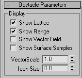 A vector field, generated around an obstacle object, allows crowd members to avoid that object in a scene. The field consists of a three-dimensional array of vectors which guide delegates or other objects around the obstacle. The settings in this rollout help determine how the vectors are generated and displayed, and how they affect other objects.