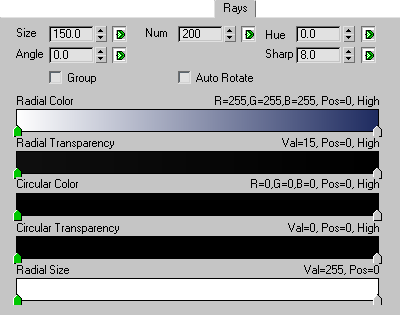 Specifies the gradation of the color of the rays. This parameter can be animated.