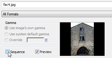 7. In the file dialog that opens, choose fac4.jpg as the bitmap, turn off Sequence, and then click Open.