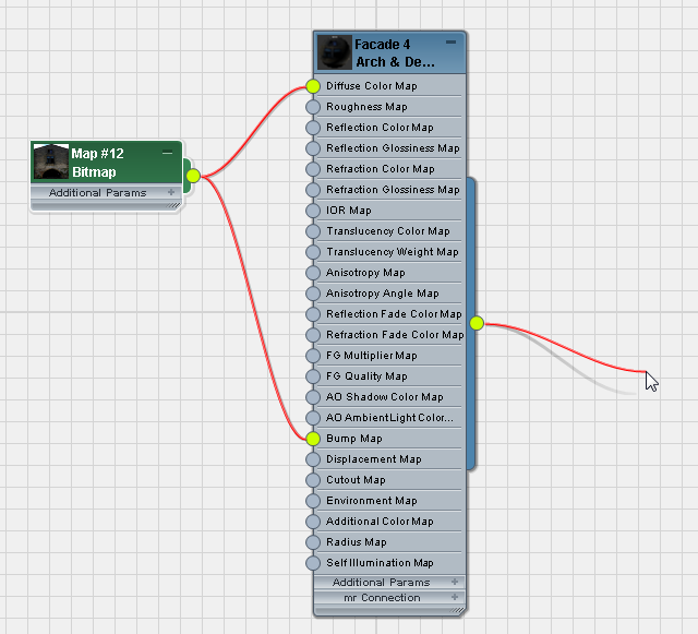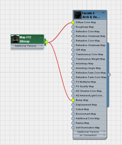 8. Wire the Bitmap to the Arch & Design material’s Diffuse Color Map and Bump Map components.