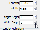 6. In the Front viewport, drag to create a plane. Change the Length (height) value to 10.0m and the Width value to 6.8m. Change Length Segs = Width Segs = 1.
