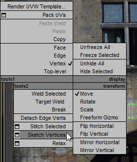 - Right-click the Edit UVWs window, and choose Sketch Vertices from the quad menu.