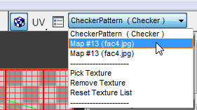 - On the Edit UVWs dialog, choose “Map #13 (fac4.jpg)” from the background pattern drop-down list. (The map number might vary.)