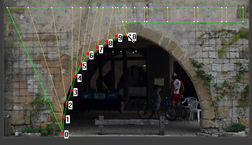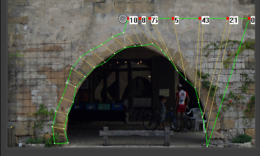 - With the pencil cursor, sketch along the lower-left edge of the arch that the bitmap shows.