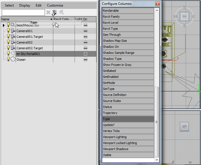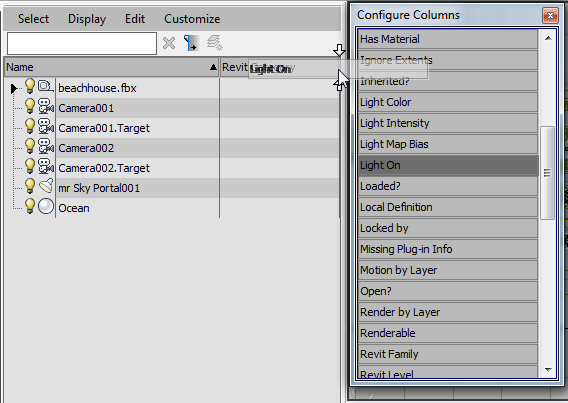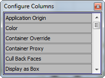 - Move the Configure Columns dialog to the right of the Scene Explorer window.
