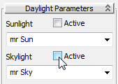 - On the Daylight Parameters rollout, turn off the two Active toggles for Sunlight and Skylight.