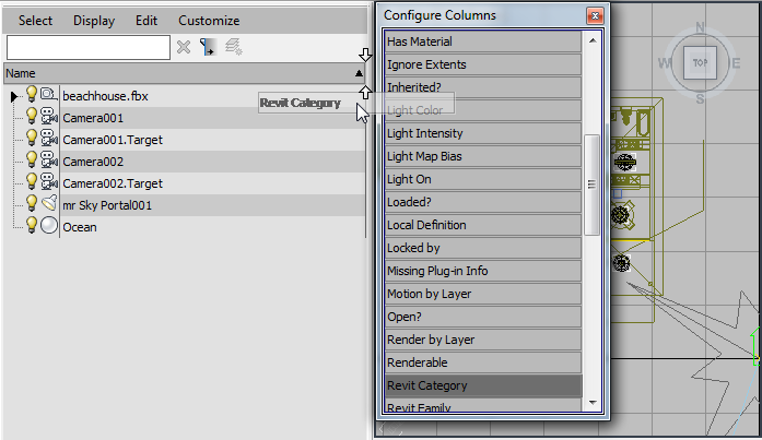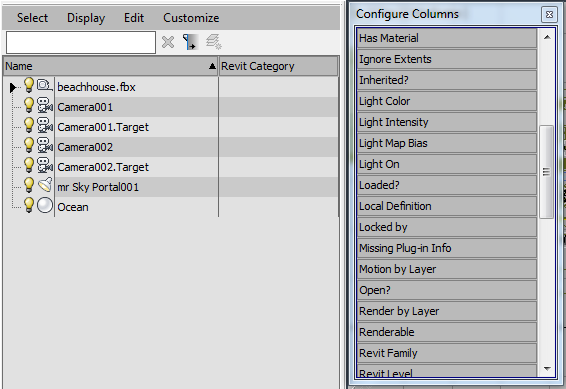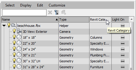 3ds Max adds the Revit Category column to the Scene Explorer.