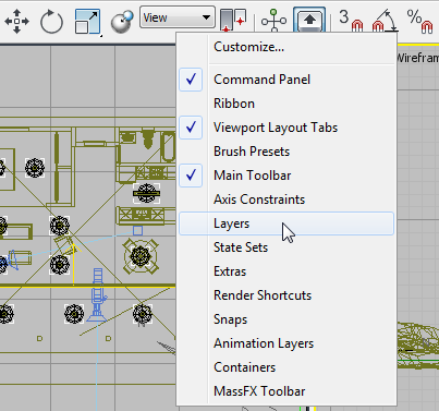 - Right-click an empty area of the main toolbar, and from the drop-down menu, choose Layers.