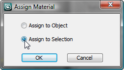 3ds Max opens an Assign material dialog. On the dialog, make sure Assign To Selection is chosen, then click OK.