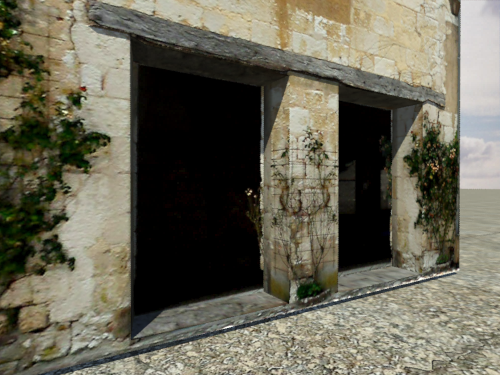 This is a medium shot. Facade1, on the left, is in shadow: But at another time of day, you would be able to see the right sides of the doorways. So we will show how to correct the sides of the doorway, and the doorstep.