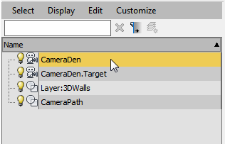 - On the Name And Color rollout, change the camera's name to CameraDen.
