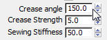 3. On the Seams rollout, change the Crease Angle value to 150.0. Change the Crease Strength value to 5.0.