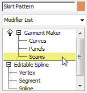 1. On the modifier stack, click (the plus-sign (+) icon) to open the Garment Maker hierarchy, if it isn’t visible already. Then click the Seams sub-object level to make it active.