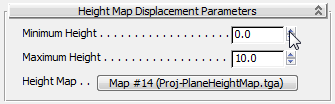 - Double-click the Height Map Displacement node to display its parameters, and on the Height Map Displacement rollout, set Minimum Height to 0.0.