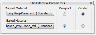 As the rollout shows, the Shell material contains two types of material: the originally assigned plane material, which displays only when rendered, and the baked material obtained from the source object, which displays only in viewports.
