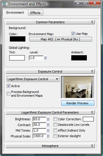 - On the Exposure Control rollout, make sure Active is turned on, and then click Render Preview.