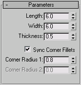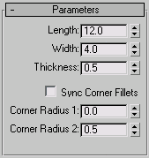 The Parameters rollout is context-sensitive and displays different settings depending upon the built-in section you've chosen to sweep along a spline. For example, more complex sections such as the Angle have seven settings that you can change, whereas the Quarter-Round has only one setting.
