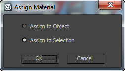 If the object isn't selected, or if it's the only object selected in the scene, the material is applied immediately. If the object is one of several selected objects in the scene, 3ds Max prompts you to choose whether to apply the material to the single object only or to the whole selection (the latter is the default choice).