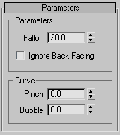 The parameters of this modifier are similar to those of the Soft Selection function of an editable mesh or editable poly object.