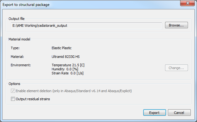 Ensure the 21.5 [C] temperature environment is selected and click Export.