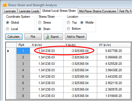 The Laminate module includes several analysis features that enable you to calculate the effects of different loading on a composite laminate. Two tabs within the Stress-Strain and Strength Analysis feature in the Laminate module will perform this particular calculation: Mid-Plane Strains/Curvatures and Global/Local Stress/Strain.