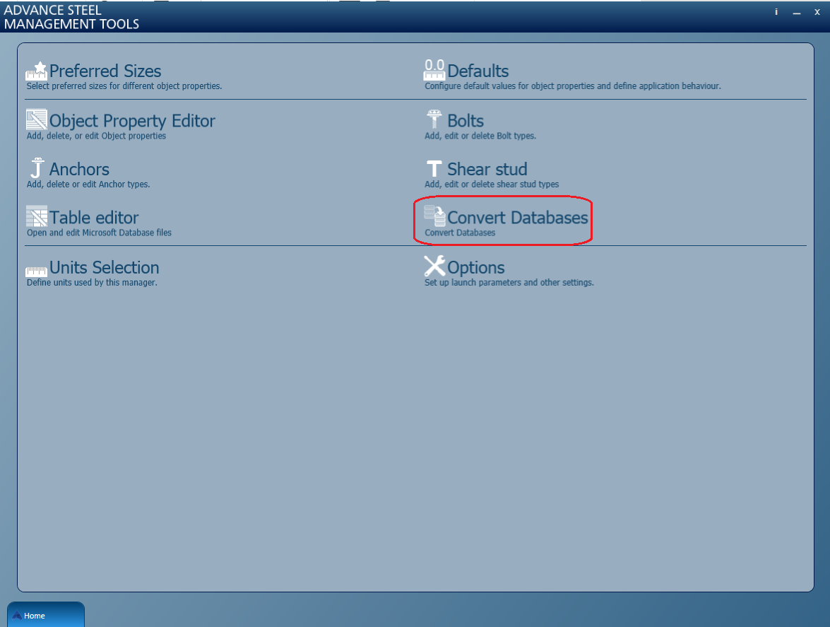 Use the Open database button and then select the old version of the database (for example the AstorGratings.mdb from Advance Steel 2015, located in C:\ProgramData\Autodesk\Advance Steel2015\Steel\Data). The convert tool will automatically know the equivalent AS 2016 database to which the merge is done.