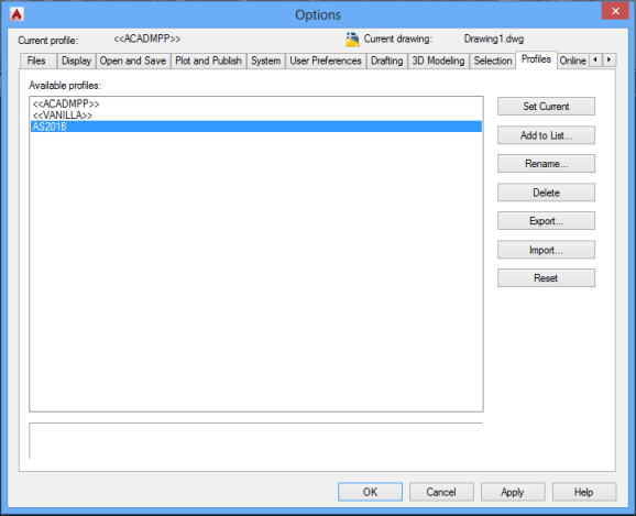 - From the meniu, access the Options dialog box, Profile tab, and make the following settings: