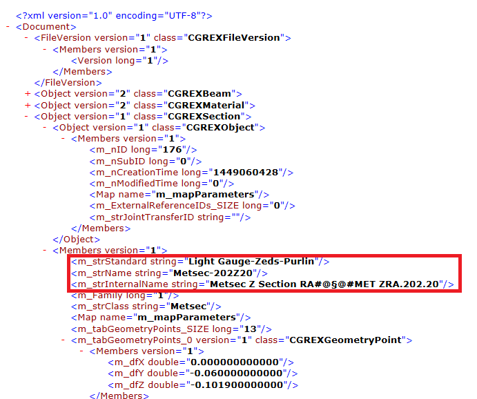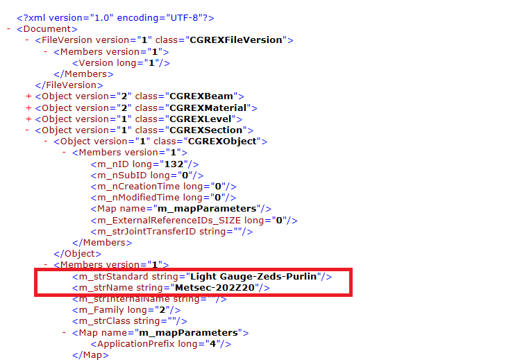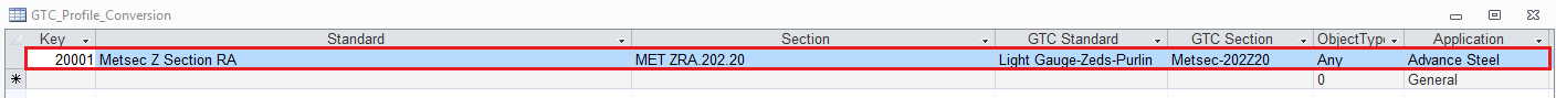 The 2 mapping lines convert the GTC Standard - Light Gauge-Zeds-Purlin to the Profile Class - Metsec Z Section RA and the GTC Section - Metsec-202Z20 to the Profile Section - MET ZRA.232.20