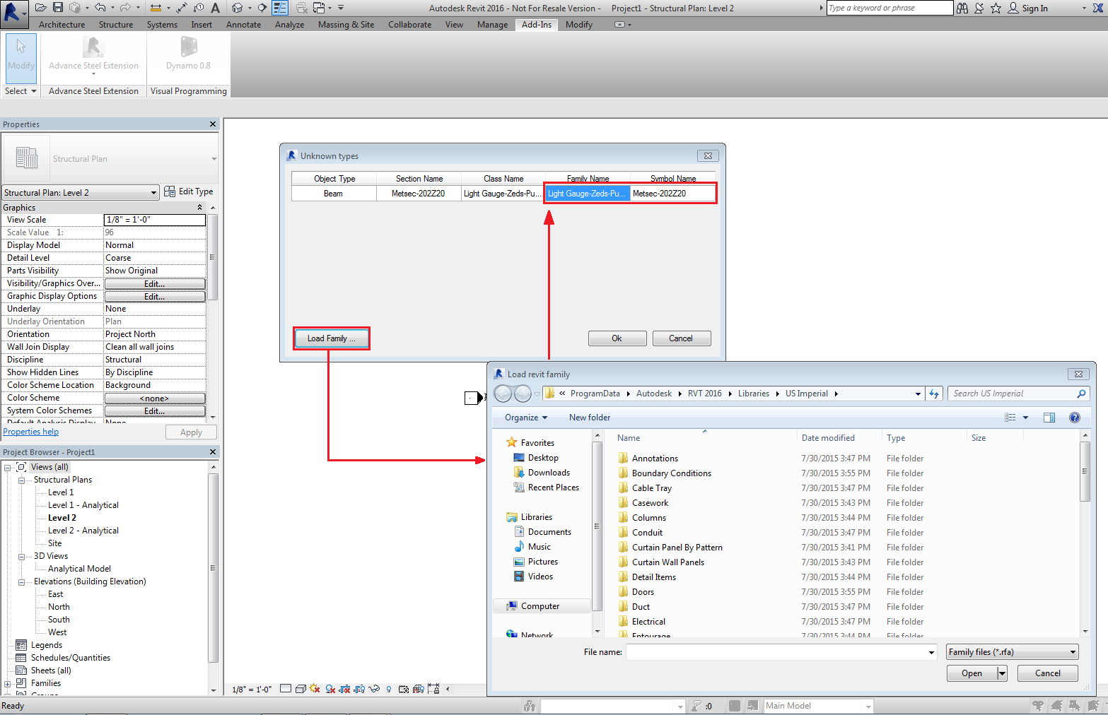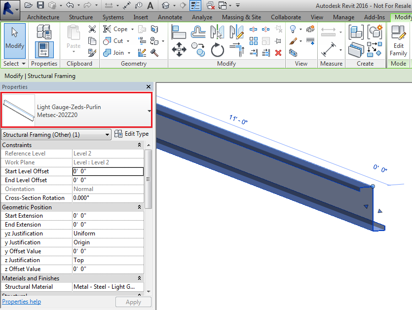 Create an element in Revit (e.g. Light Gauge-Zeds-Purlin Metsec 202Z20)