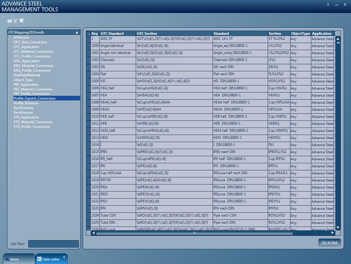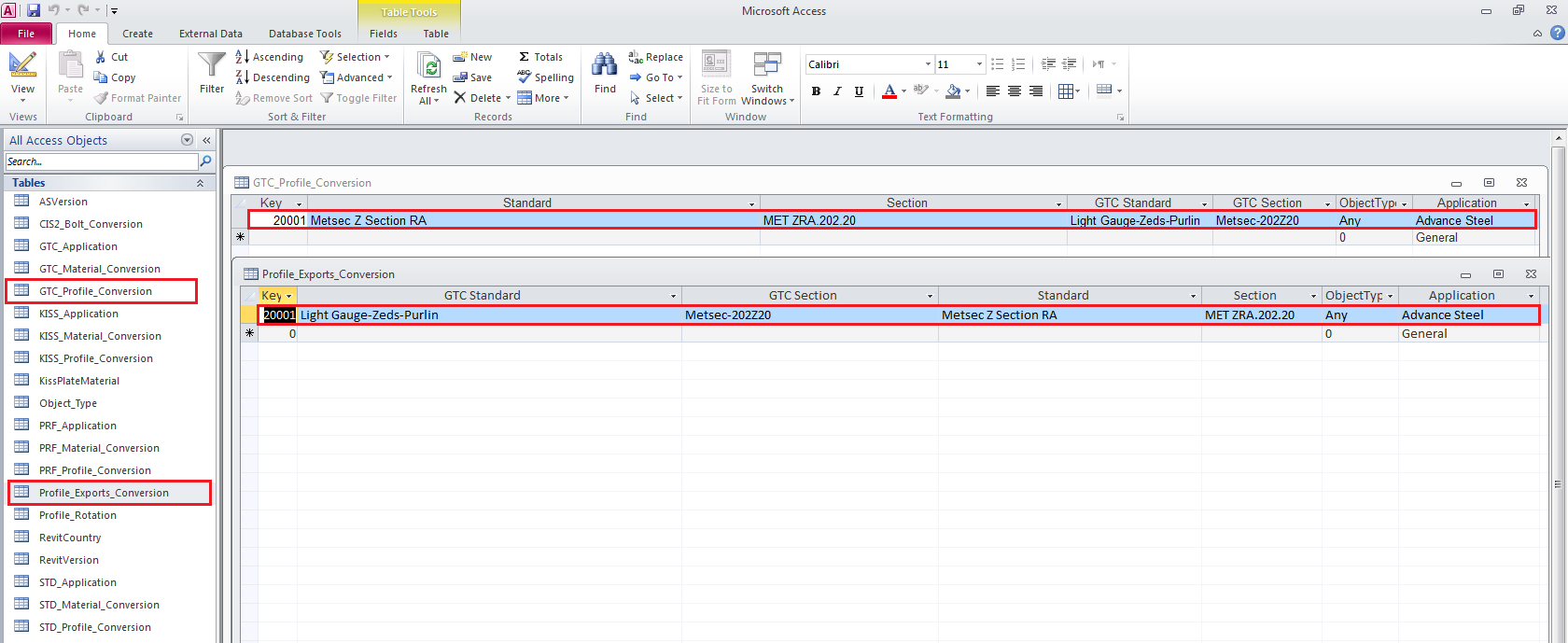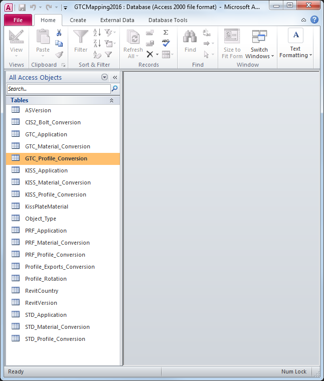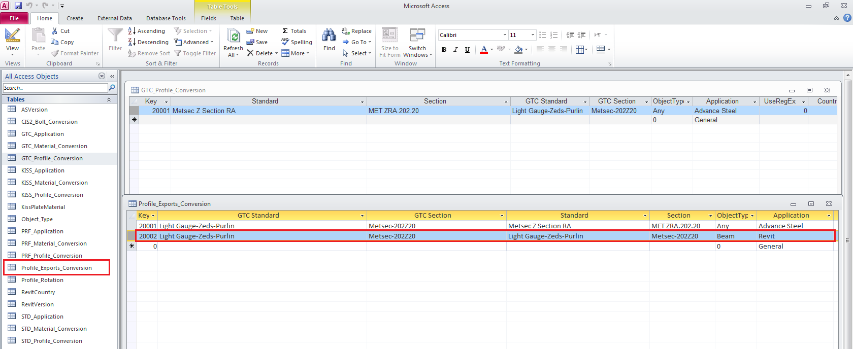 The GTC Mapping database is a Microsoft Access Database which ensures smooth transfers between Advance Steel, Revit and other compatible software.