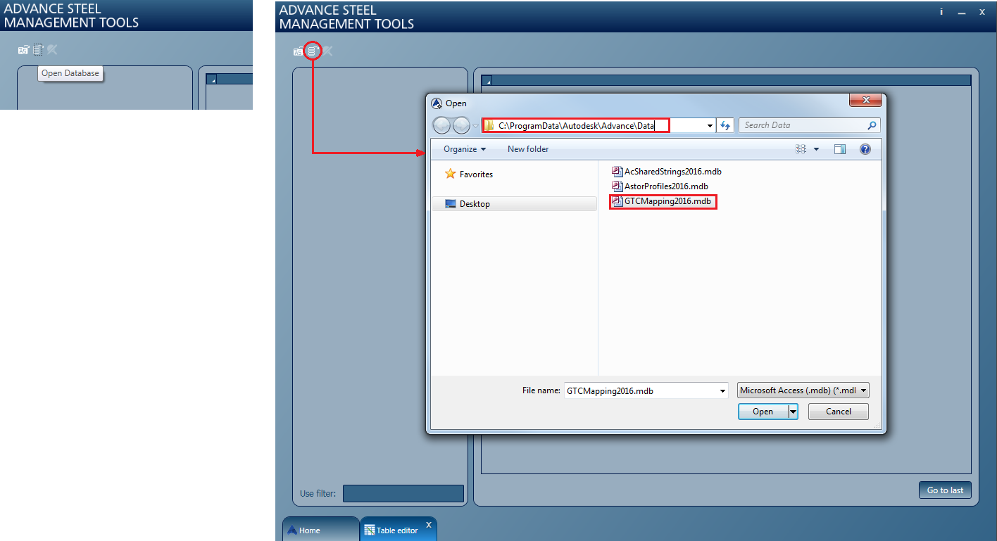 The GTC Mapping database location: C:\ProgramData\Autodesk\Advance\Data\GTCMapping2016.mdb