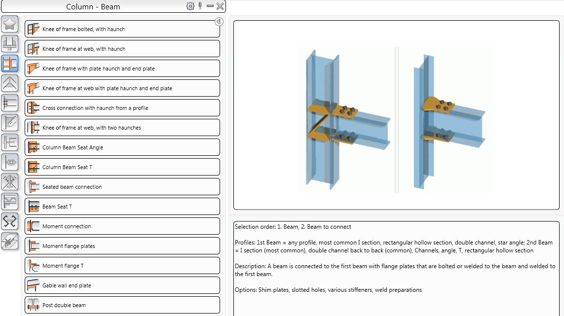 (Connection Vault). Select from the categories of joints in The Connection Vault. Individual element types display appropriate joints.