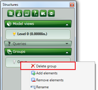 All created groups are listed in the Project Explorer, in the Groups panel of the Structures tab. Groups can be created only when the groups panel is unlocked.