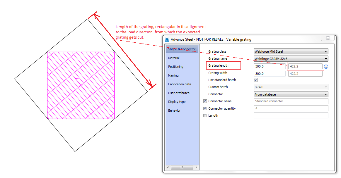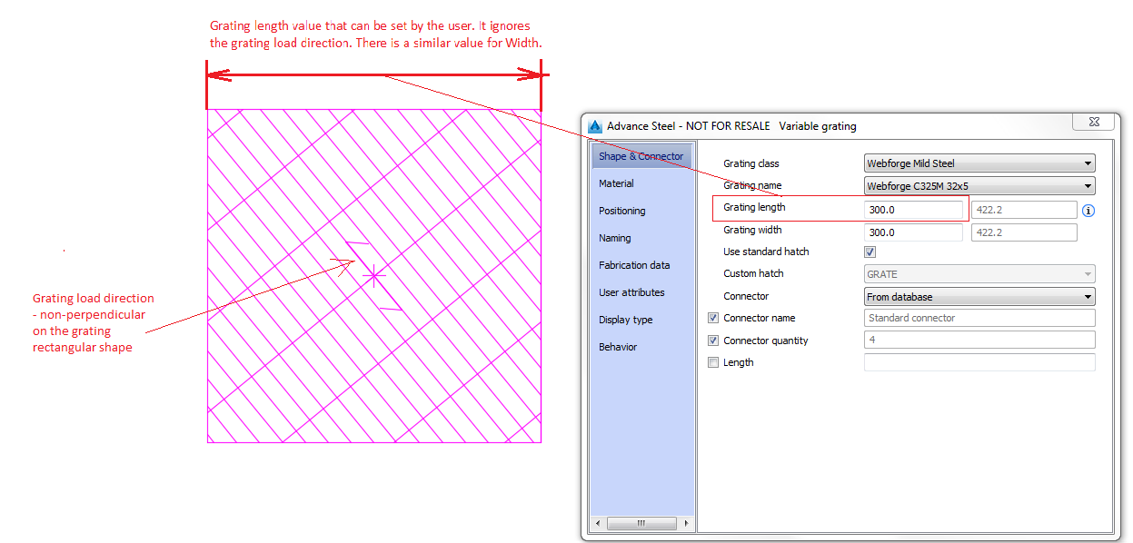 - The dialog now contains two values that you can use. These two values change the visible shape of the rectangular grating, along the width and length values, ignoring the load orientation.
