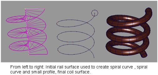 First you need to model a spiral curve to act as a rail. You then place a small circle or other closed curve at the beginning of the spiral to act as the profile. Finally, you use Swept surface tools such as Extrude or Rail Surface to produce the coil.