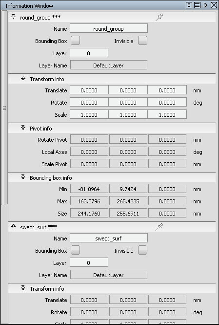 When more than one object is picked, the different objects are displayed under collapsible headings with their names.