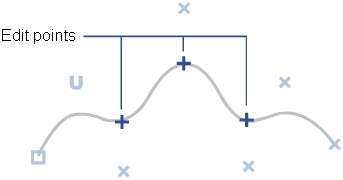 Unlike the on-curve control points of Bezier curves (used in many 2D illustration programs), NURBS edit points are not usually used for editing curves. CVs control the shape of a NURBS curve, and edit points are just indicators of how many spans a curve has.