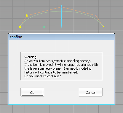 - Once defined, the symmetry plane is unique to each curve or surface. When a curve or surface is transformed, its symmetry plane becomes decoupled from the layer symmetry plane, and follows the object. If the plane doesn’t match the layer symmetry plane anymore, it is drawn in a different color. A confirm box also appears in this case.