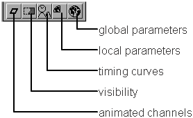 If neither of the fourth and fifth buttons is selected, then all animation parameters for non-DAG node items are listed. If only the local parameter button is selected, then only those animation parameters are listed that correspond to those selected in the item’s local parameter control.