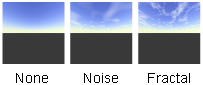 The texture that determines cloud distribution in the sky. For example, the Fractal texture creates very realistic clouds. By default, there is no cloud texture map (and no clouds).
