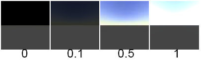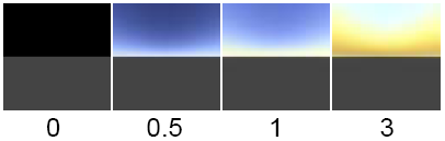 A scaling factor applied to the sky color. The default color Value is 0.5.