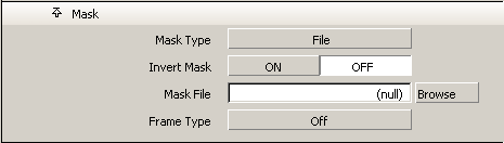 Determines whether the image plane will use an animated sequence of mask files (Regular or Keyframe), or a single mask file (Off). The default setting is Off. The Mask parameter Frame Type is identical to Image parameter Frame Type.