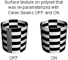 Removes texture distortion at seams and poles when a mesh is re-parameterized using a Projection texture that uses a cylindrical, spherical, or ball projection type. If Cleans Seams is ON, UV parameters may no longer be within the 0 to 1 range. The default setting is ON.