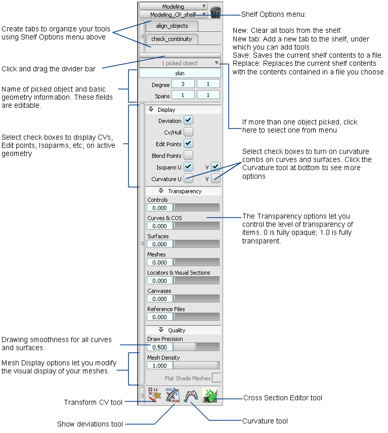 This set of options lets you adjust the display of your curves, surfaces, and meshes.